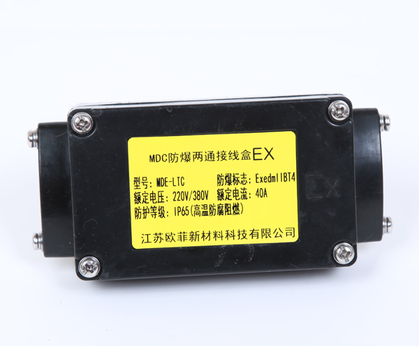 增安型中間防爆接線盒用于防爆區(qū)域與電熱帶之間的連接,以增加電熱帶的長度或用在同一管線上配不同功率的電熱帶及三叉管等較復(fù)雜的場合。它有MDE型直行接線盒與MDT型T型接線盒兩種型式,它們都按“增安型”防爆電器設(shè)計制造。防爆標(biāo)志“ellT4”,與電熱帶配套后適用于工廠一區(qū)、二區(qū)爆炸性氣體混合物T4組場所。其外殼為SMC。